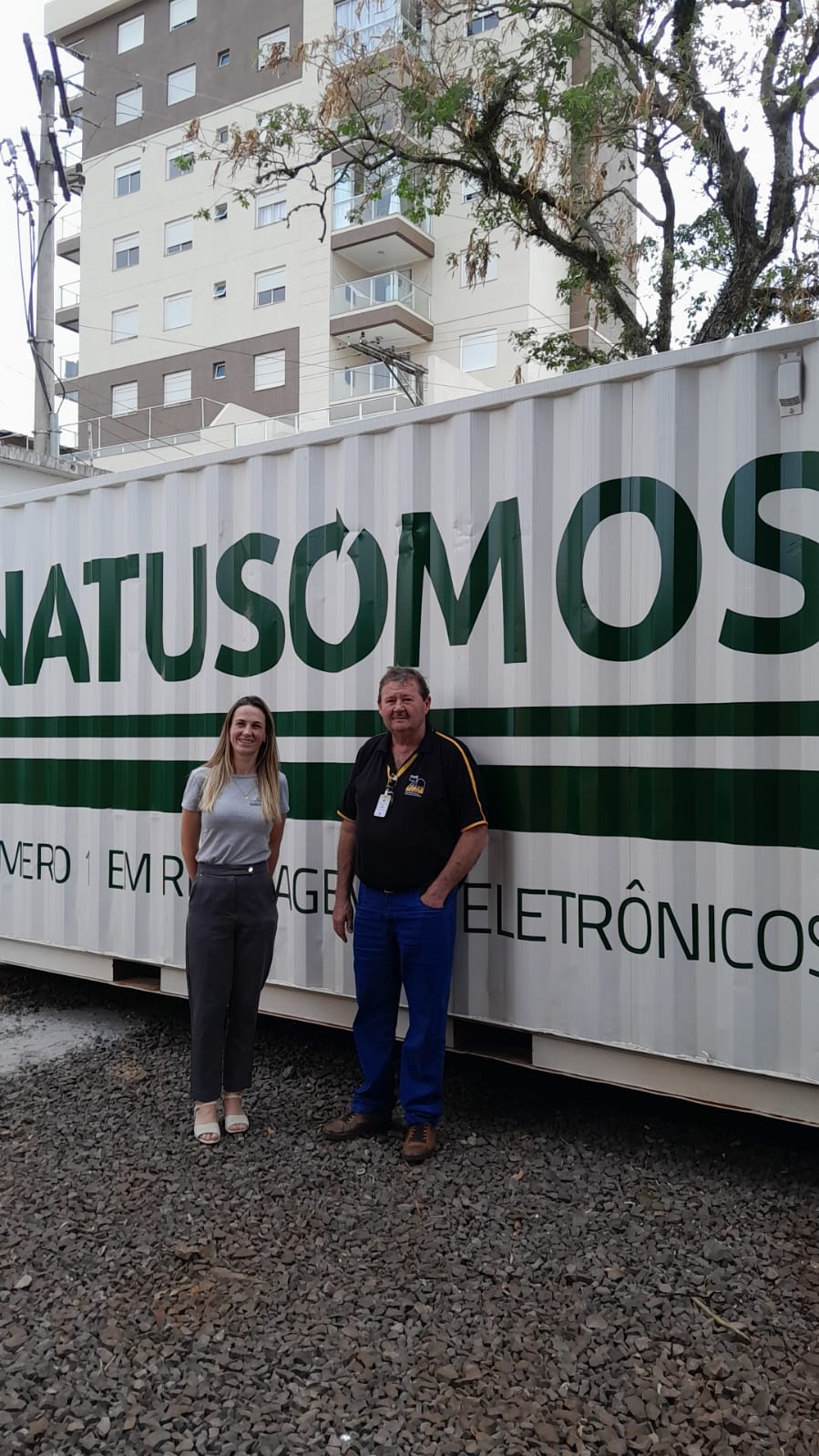 Ibirubá deu mais um passo importante na gestão ambiental com a instalação de um contêiner exclusivo para o descarte de resíduos eletrônicos. O equipamento foi disponibilizado pela empresa NatuSomos, de Horizontina, licenciada para a coleta e o processamento de materiais dessa categoria. O contêiner foi recebido pelo secretário de Desenvolvimento Econômico, Agropecuário e Ambiental, Liberto Leomar Franken, e pela engenheira ambiental Raquel Camera Fritsch.