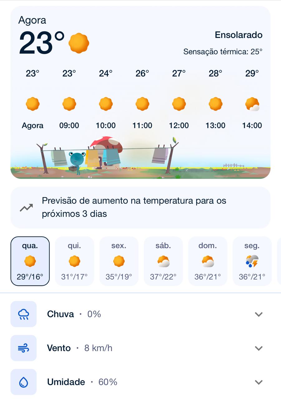 Veja a previsão do tempo em Ibirubá (RS) para os próximos dias: o final de semana terá temperaturas elevadas, podendo chegar aos 37ºC. Lembre-se de beber bastante água e usar protetor solar.